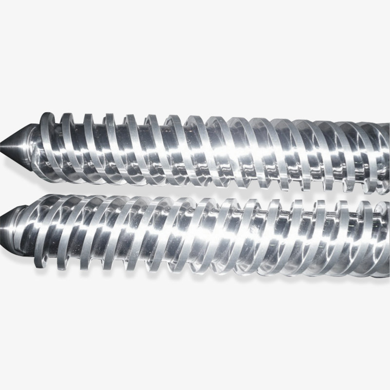 In our product line, Conical Twin Screw And Barrel is a very important component. It is mainly composed of a drum, a transmission device, a feed port, a discharge port and an exhaust port. During the material processing process, the conical twin screw barrel rotates to place the material inside the drum, and the material is subjected to the centrifugal force and gravity inside the drum to achieve the purpose of mixing, drying, grinding and separation. This design improves the efficiency of material processing, optimizes the distribution of materials on the conveyor, and reduces the possibility of material blockage. Conical Twin Screw And Barrel is widely used as an important industrial equipment in injection molding machines, material mixing, drying, grinding, separation and other process processes. It has a conical appearance and is usually made of metal materials such as nitrided steel 38CrMoAlA.